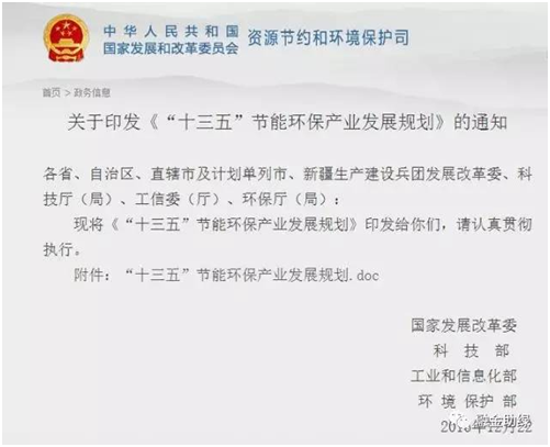 "十三五"節(jié)能環(huán)保產(chǎn)業(yè)發(fā)展規(guī)劃